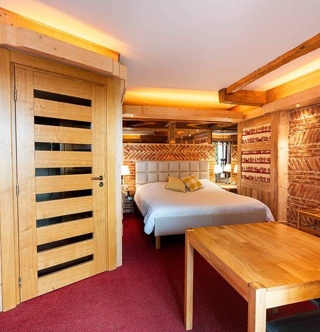 Très spacieuse, 30m2, d’un confort douillet, tapissées de boiseries claires, depuis le salon, on aperçoit les vallons abritant le Château du Haut-Koenigsbourg.